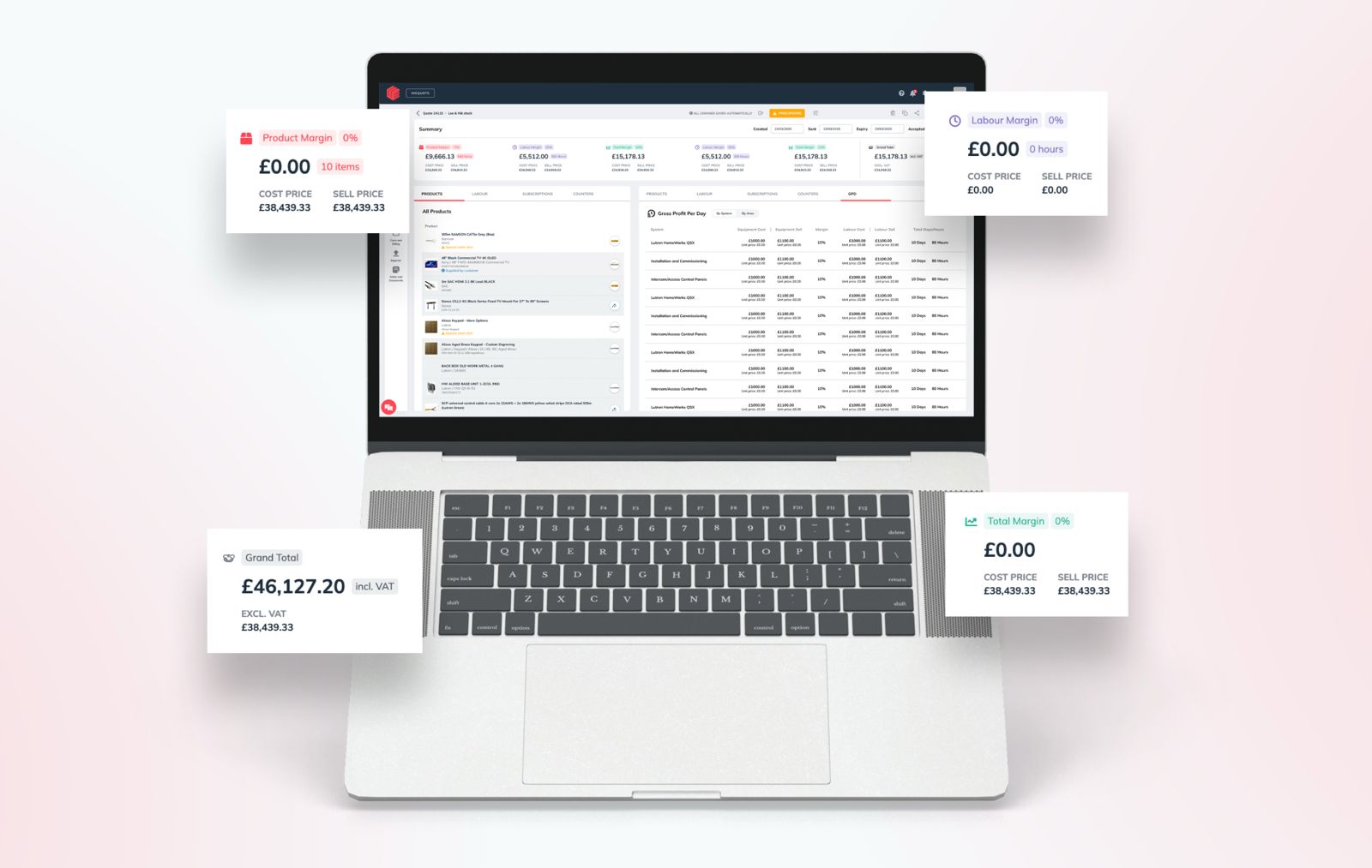 Real-time margin visibility: live margin tracking as a quote is built, rather than calculating it afterwards. Particularly valuable for businesses managing large volumes of projects simultaneously.