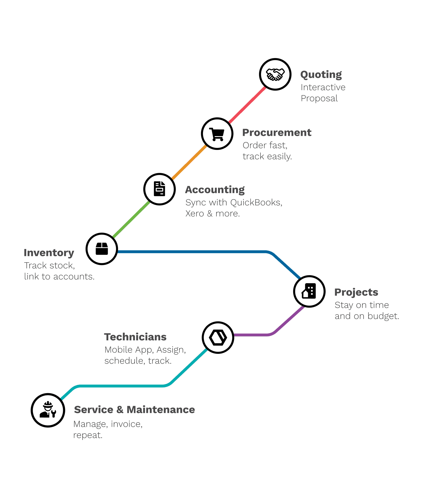 From signed quote to completed job, everything stays linked.