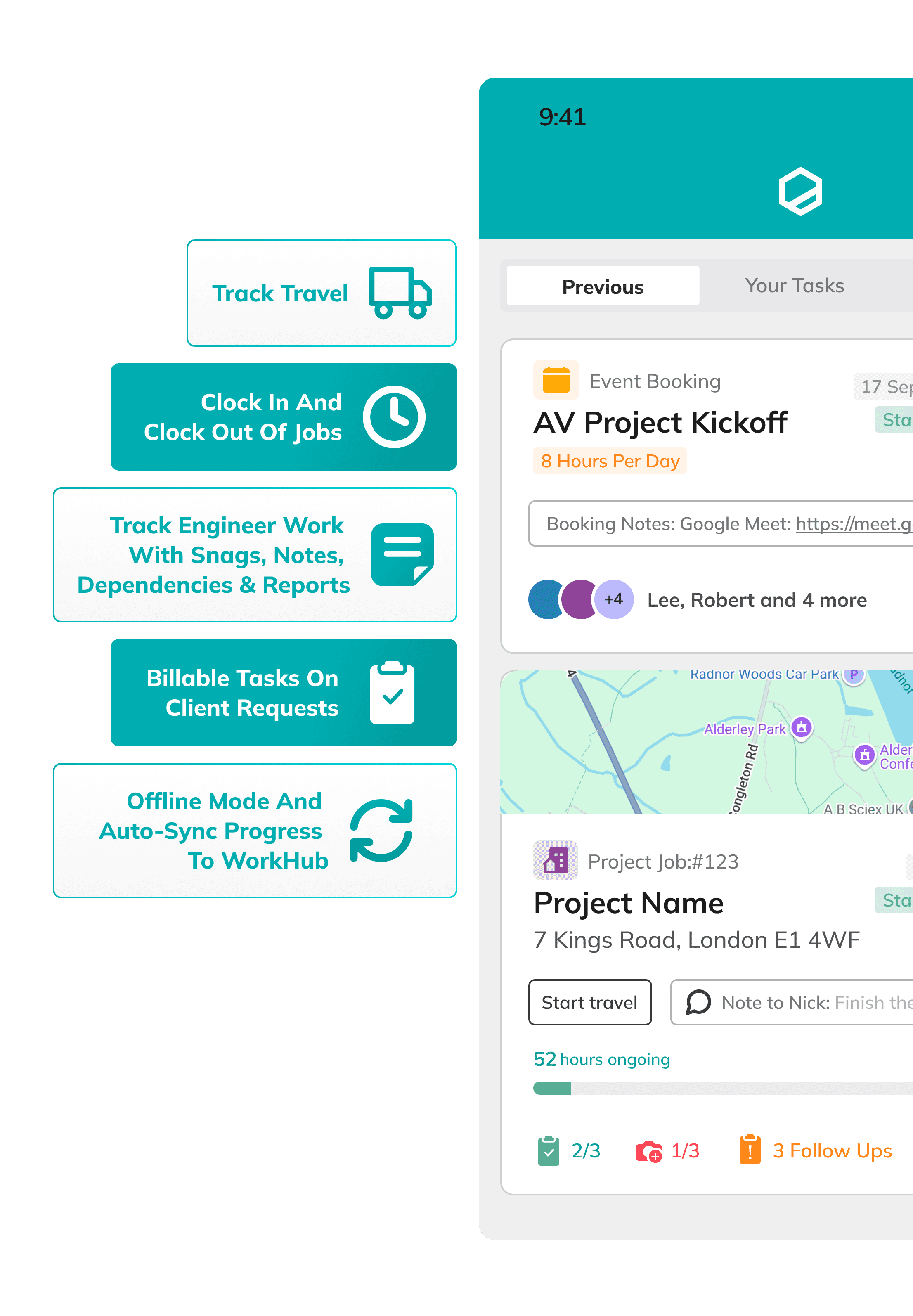 Sync everything back to WorkHub for office visibility.
