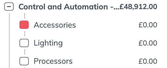Group items into logical subsystems such as racks, video distribution, lighting control, or any category you define. This makes large projects easier to navigate, keeps engineers aligned, and allows clients to understand the technical structure without getting lost in long product lists.