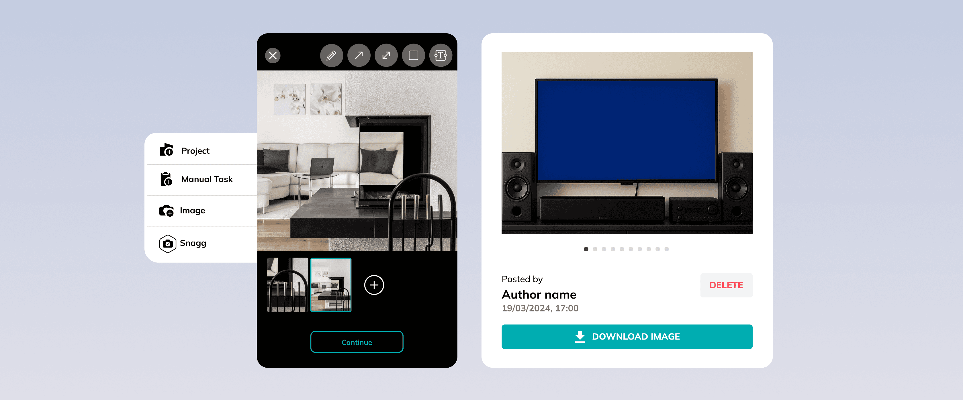 Take and upload photos of installations, defects, or completed jobs. Add notes, locations and even expenses directly from site. Every action is documented and tied to the project.